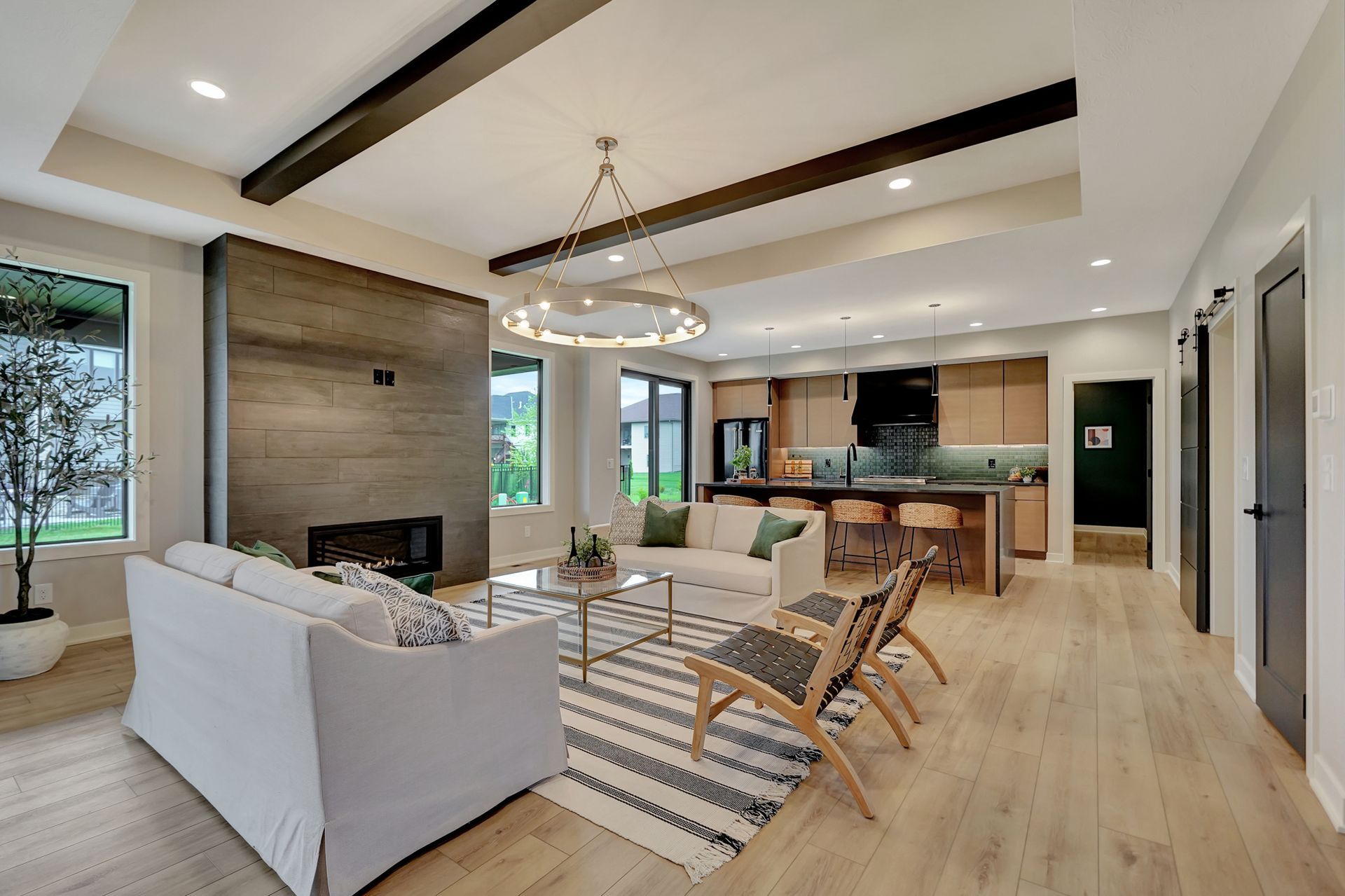 In open floor plans, fewer flooring changes often create a cleaner, more cohesive look.